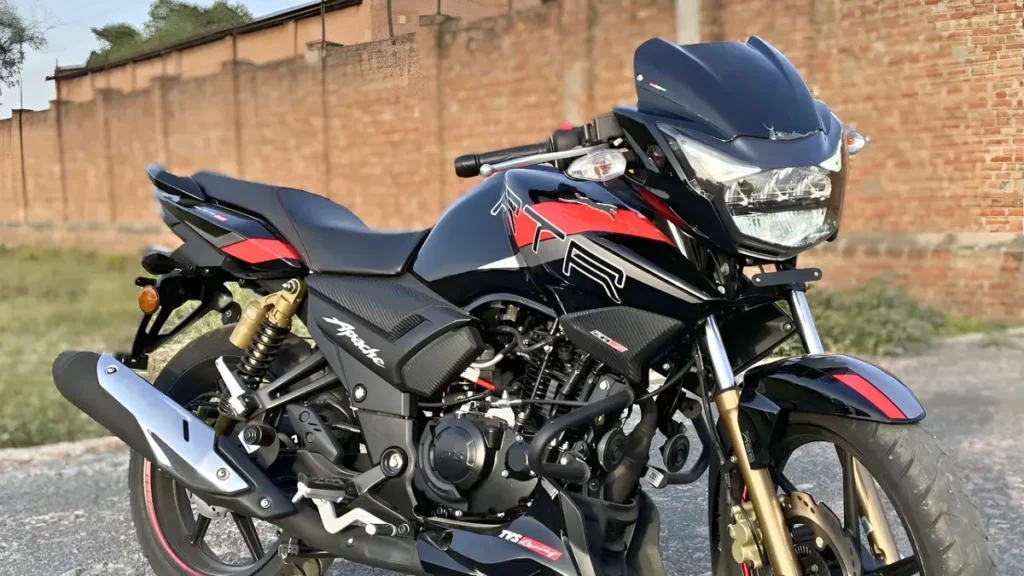 यदि आप बाइक का डिजाइन देखोगे तो देखते ही रह जाऊंगी क्योंकि इसमें आपको फ्यूल टैंक पर रेसिंग-स्टाइल ग्राफिक्स और TVS की सिग्नेचर Apache बैजिंग देखने के लिए मिलेंगी जैसे एक अलग ही पहचान देते हैं टैंक की शेप एर्गोनॉमिक्स को ध्यान में रखकर बनाई गई है ताकि राइडर को बेहतर ग्रिप और कंट्रोल मिले साइड पैनल्स और इंजन काउल को भी नया स्पोर्टी टच दिया गया है, जिससे बाइक का ओवरऑल प्रोफाइल और भी एग्रेसिव दिखता है।